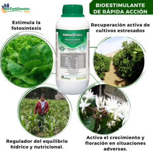 Bioestimulante de fácil absorción, brinda una rápida respuesta de recuperación en los cultivos afectados por el estrés ocasionado por cambios en las condiciones climáticas, toxicidad, plagas y condiciones edáficas adversas.