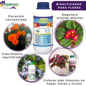 Promueve la floración concentrada, mejorando el tamaño, duración, con máxima expresión de colores en flores, frutos y hojas.